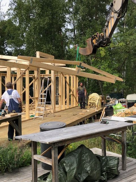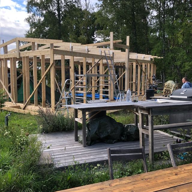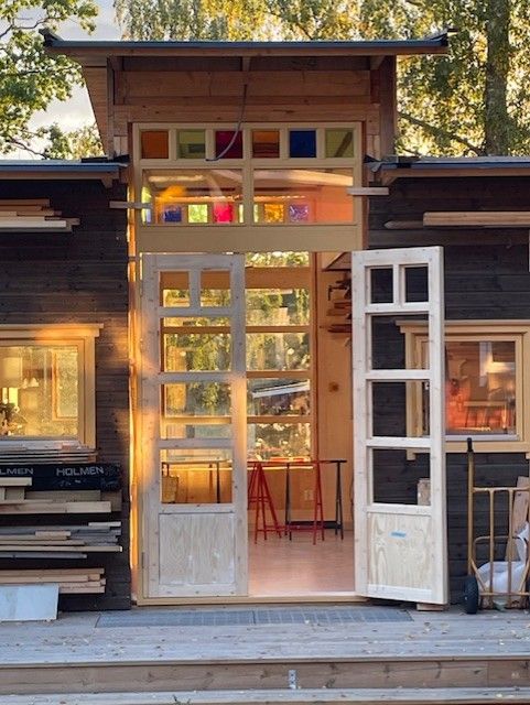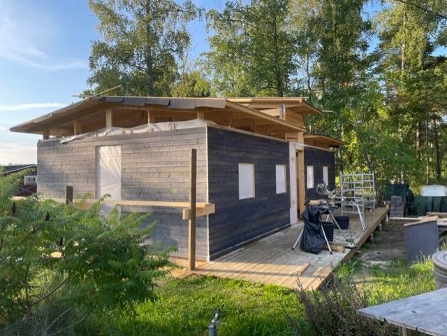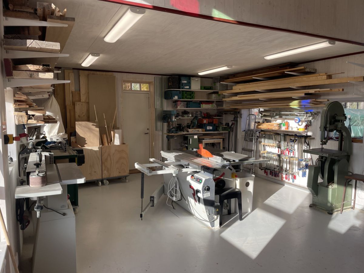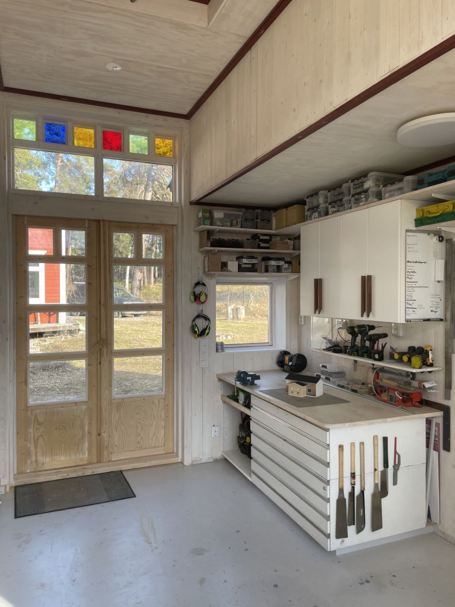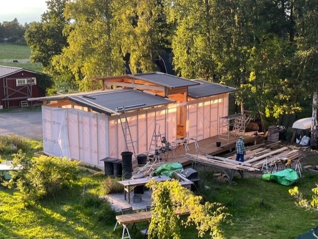 Detta har vi byggt tillsammans, med mycket möda, svett och kunskap samt en hel del skratt. 60 kvadratmeter välplanerat snickeri, ritkontor och lite annat. Från ide, skiss, bygglovsritning till färdigt hus: