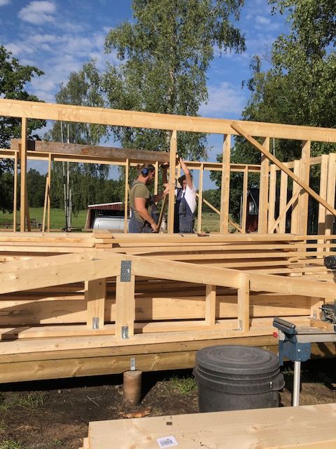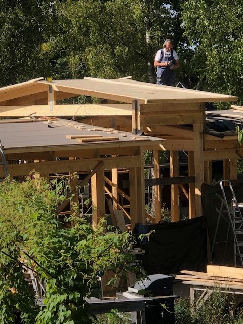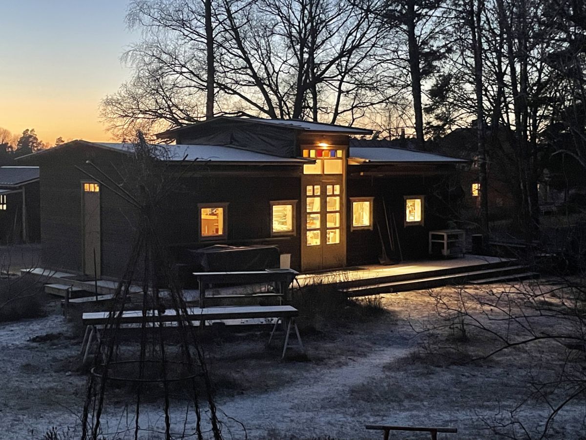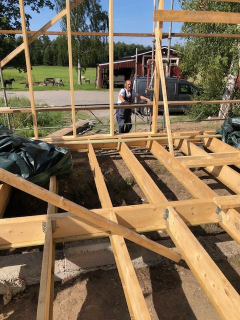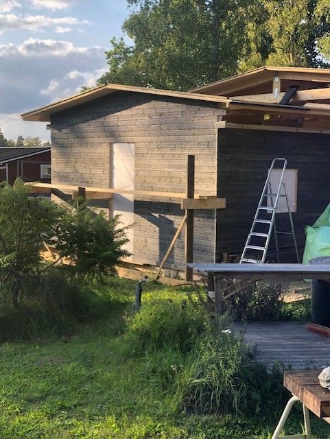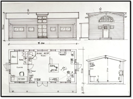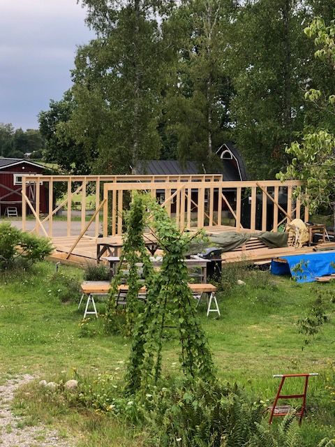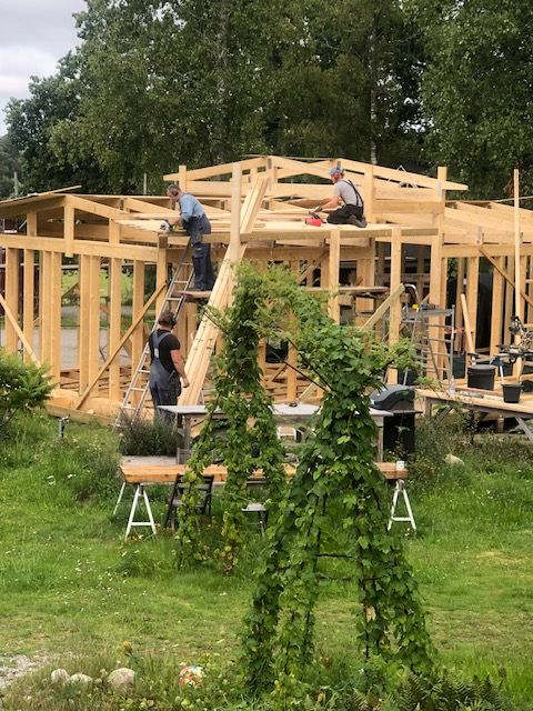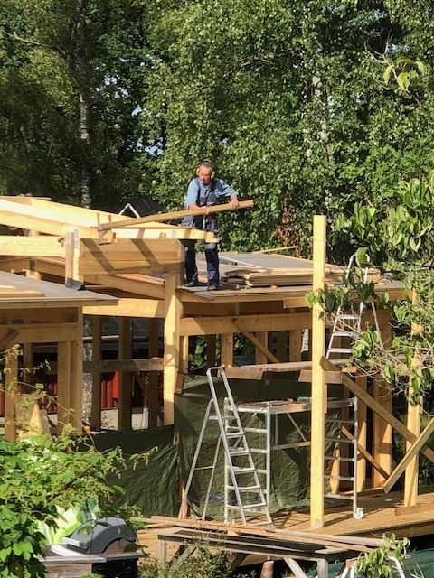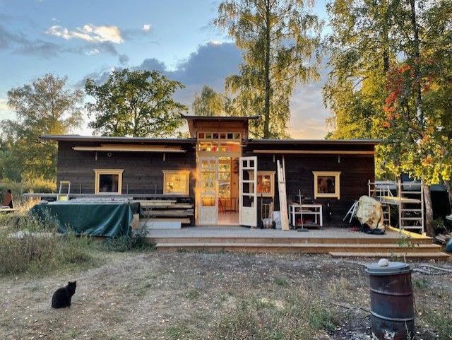Detta har vi byggt tillsammans, med mycket möda, svett och kunskap samt en hel del skratt. 60 kvadratmeter välplanerat snickeri, ritkontor och lite annat. Från ide, skiss, bygglovsritning till färdigt hus: